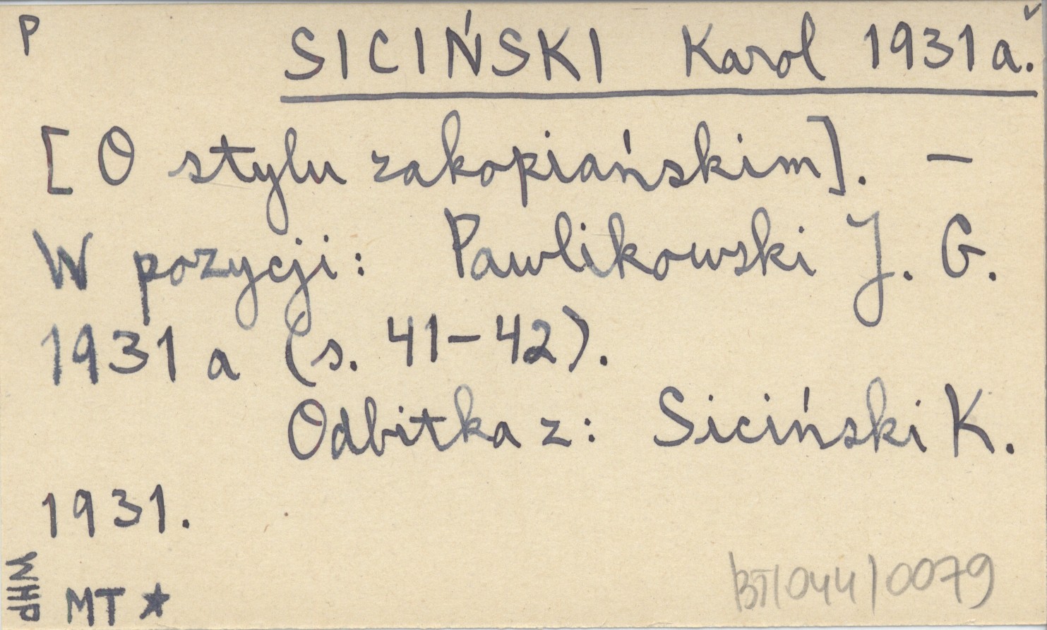 Pawlikowski J. G. 1931 a (s. 41-42). , Odbitka z: Siciński K. 1931.