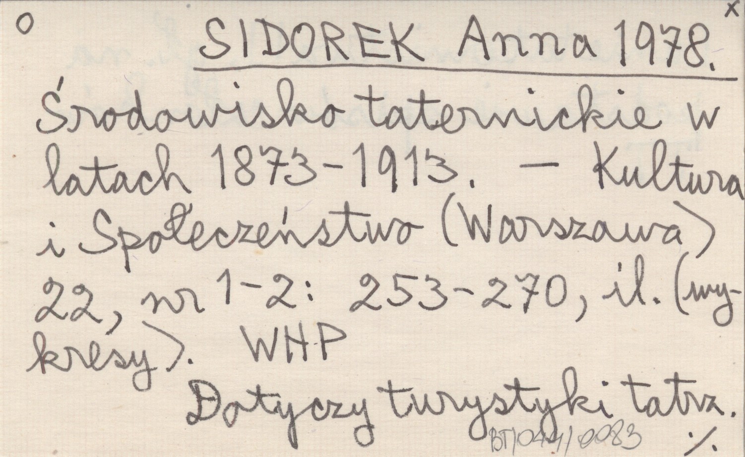 SIDOREK Anna 1978 Środowisko taternickie w latach 1873-1913.