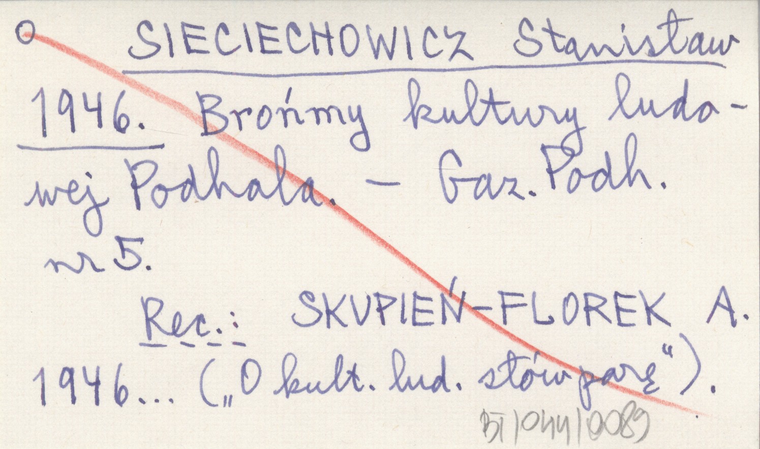 SIECIECHOWICZ Stanisław 1946 Brońmy kultury ludowej Podhala.