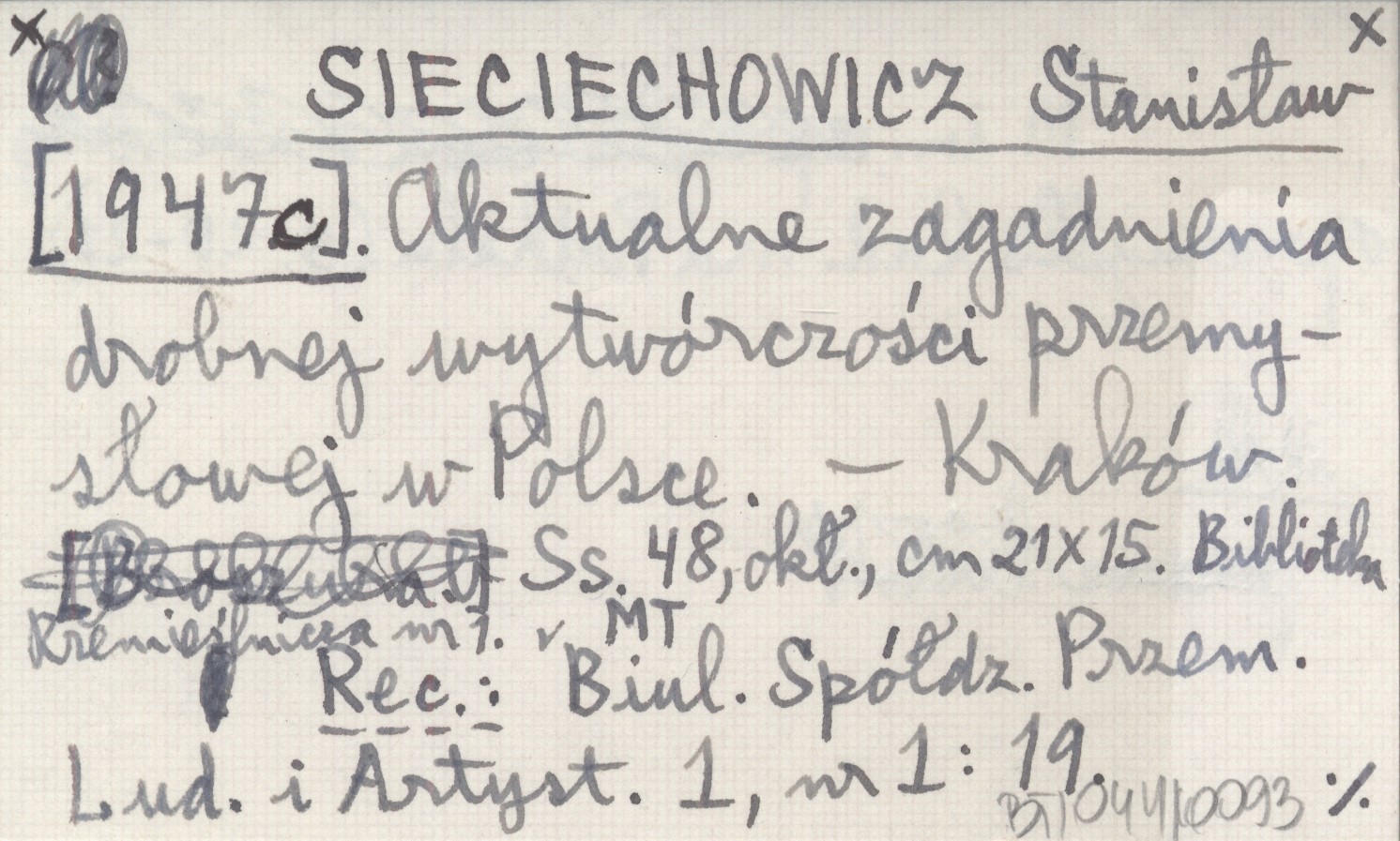 SIECIECHOWICZ Stanisław [1947 c] Aktualne zagadnienia drobnej wytwórczości przemysłowej w Polsce.