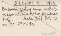 SIECIARZ K. 1963 Budowa geologiczna wschodniego zbocza Kopy Kondrackiej.