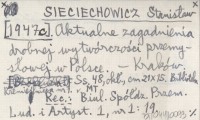 SIECIECHOWICZ Stanisław [1947 c] Aktualne zagadnienia drobnej wytwórczości przemysłowej w Polsce.