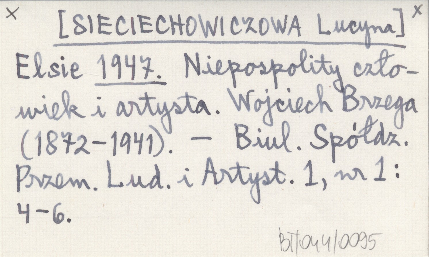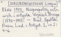 Elsie [SIECIECHOWICZOWA Lucyna] 1947 Niepospolity człowiek i artysta. Wojciech Brzega (1872-1941).