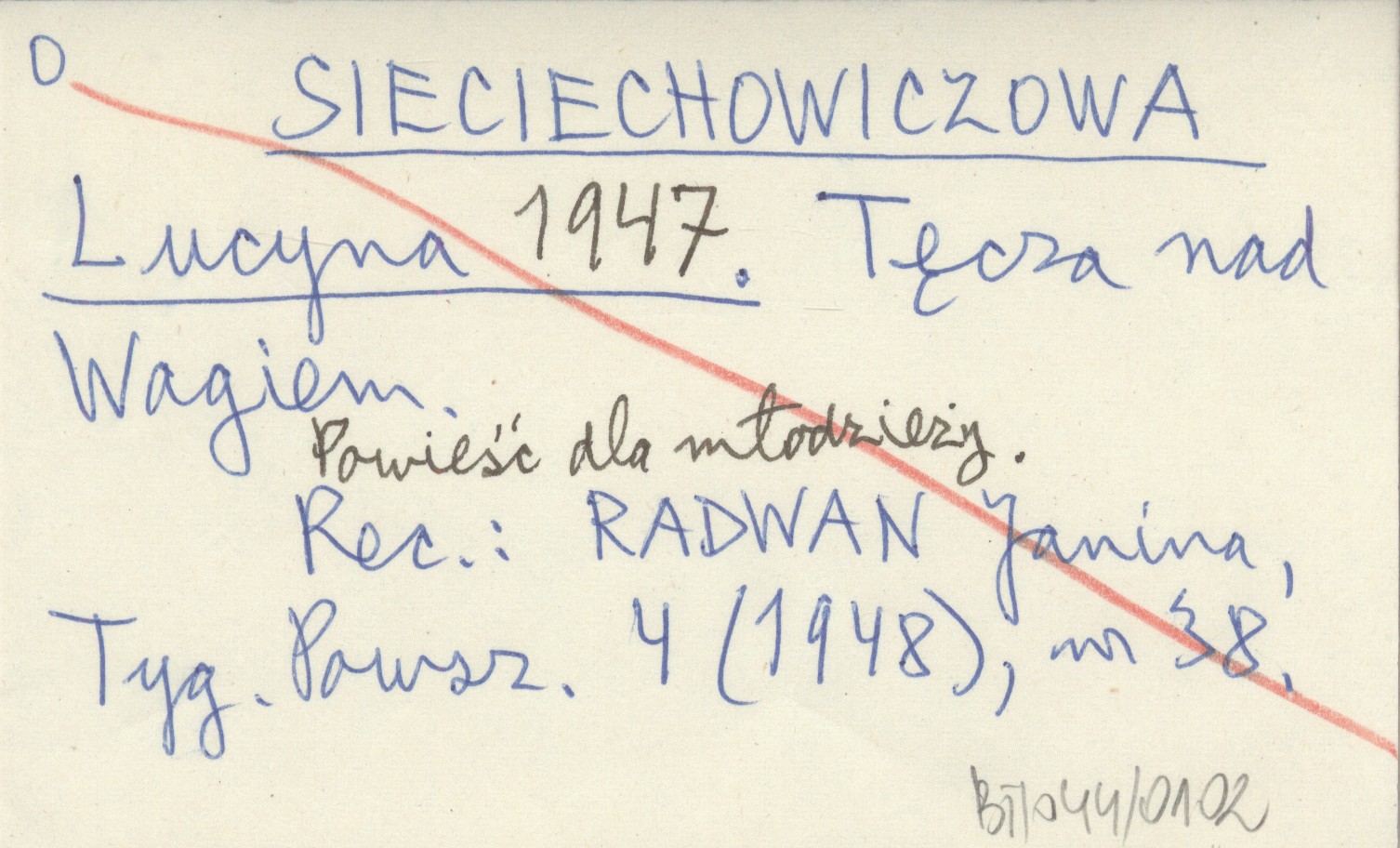 , Powieść dla młodzieży. REC: RADWAN Janina, Tygodnik Powszechny 4 (1948), nr 38.