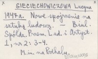 SIECIECHOWICZOWA Lucyna 1947 c Bibliografie prac związanych z przemysłem ludowym i artystycznym.