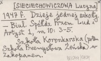 [SIECIECHOWICZOWA Lucyna] 1947 f Dzieje jednej szkoły.