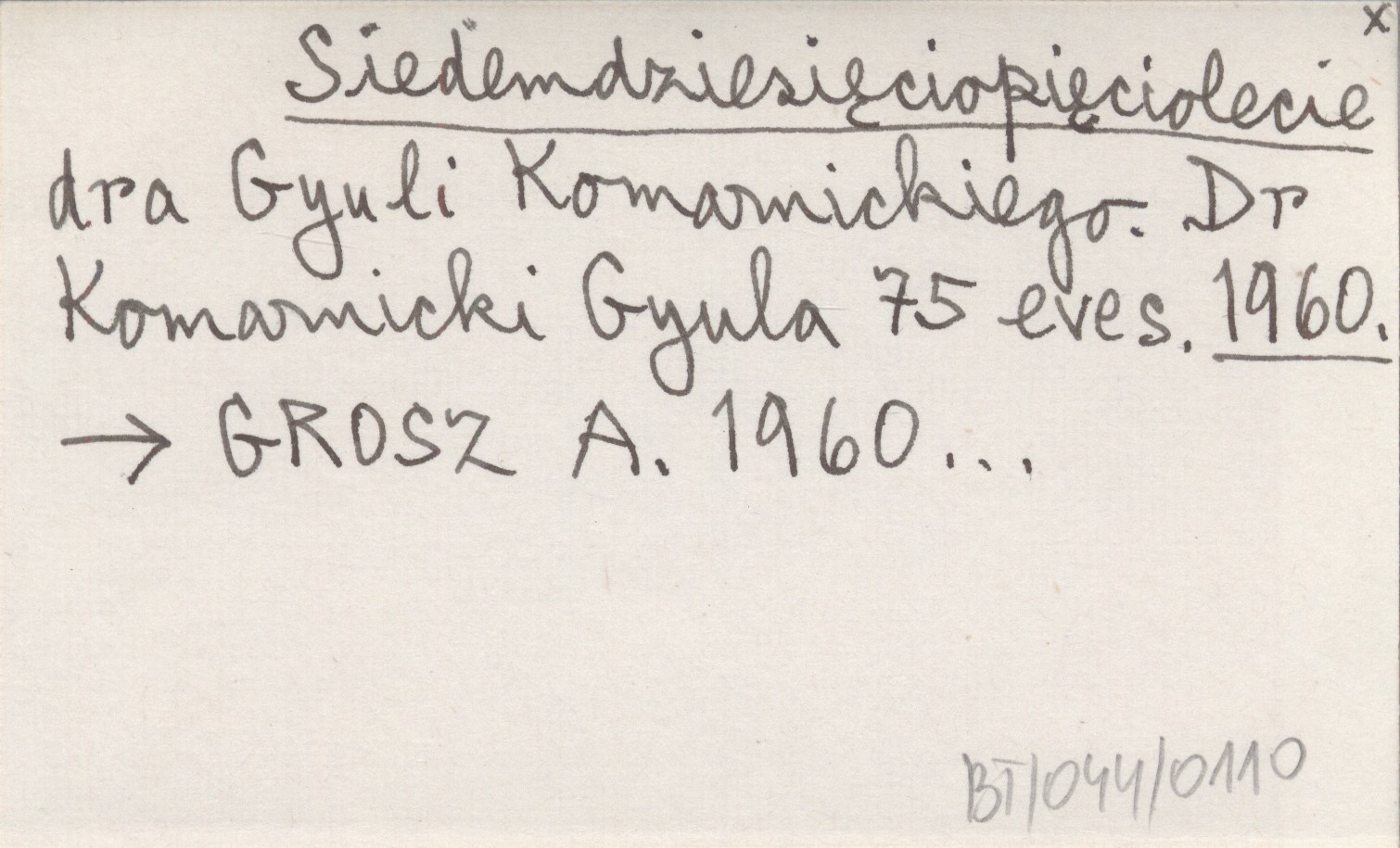 Siedemdziesięciopięciolecie dra Gyuli Komarnickiego. Dr. Komarnicki Gyula 75 eves. 1960