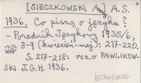 A. S. [SIECZKOWSKI Andrzej] 1936 Co piszą o języku?