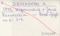 SIECZKOWSKI A. 1949 Wspomnienie o Janie Rzewnickim.