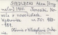 SIEDLECKI Adam [Grzymała-] 1900 Janosiki. Nowela o nowelistach.