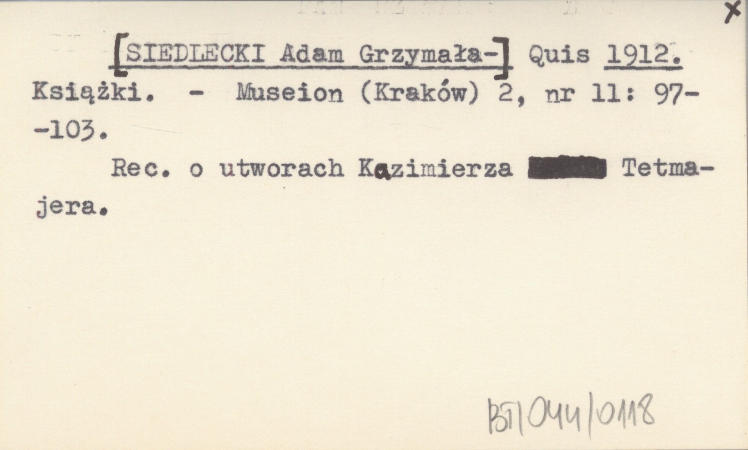 Museion (Kraków) , 2, nr 11: 97-103. Recenzja o utworach Kazimierza Tetmajera.
