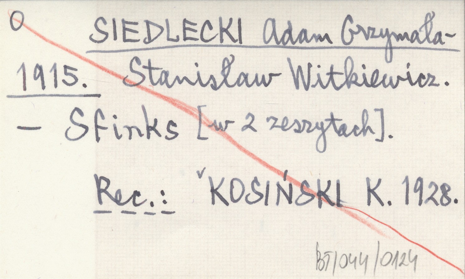 Sfinks, W 2 zeszytach. REC: KOSIŃSKI K. 1928.