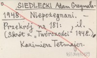 Przekrój, Nr 181: il. Kazimierz Tetmajer. Skrót artykułu tegoż z "Twórczości". REC: Dr M. 1948.