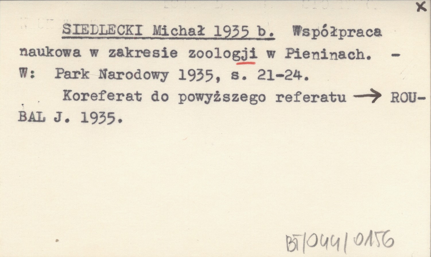 SIEDLECKI Michał 1935 b Współpraca naukowa w zakresie zoologji w Pieninach.