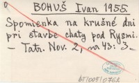 BOHUŠ Ivan 1955 Spomienka na krušné dni pri stavbe chaty pod Rysmi.