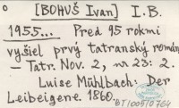 I. B. [BOHUŠ Ivan] 1955... Pred 95 rokmi vyšiel prvý tatranský román.