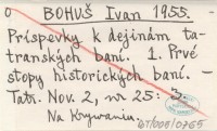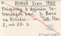 BOHUŠ Ivan 1955 Príspevky k dejinám tatranských baní. 3. Bane na Kriváni.