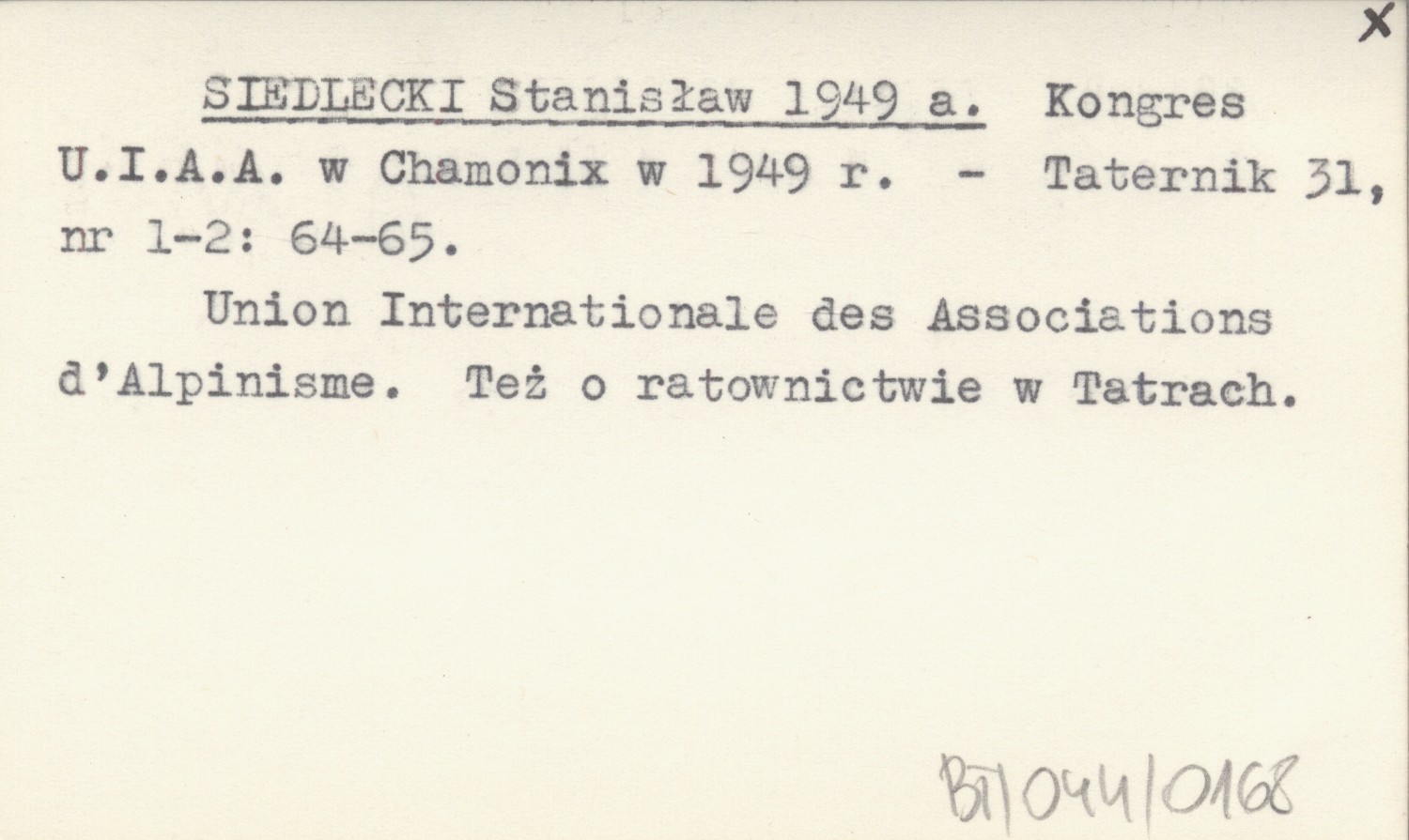 Taternik, 31, nr 1-2: 64-65. Union Internationale des Associations d'Alpinisme. Też o ratownictwie w Tatrach.