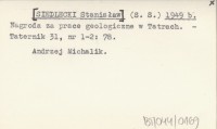 (S. S.) [SIEDLECKI Stanisław] 1949 b Nagroda za prace geologiczne w Tatrach.