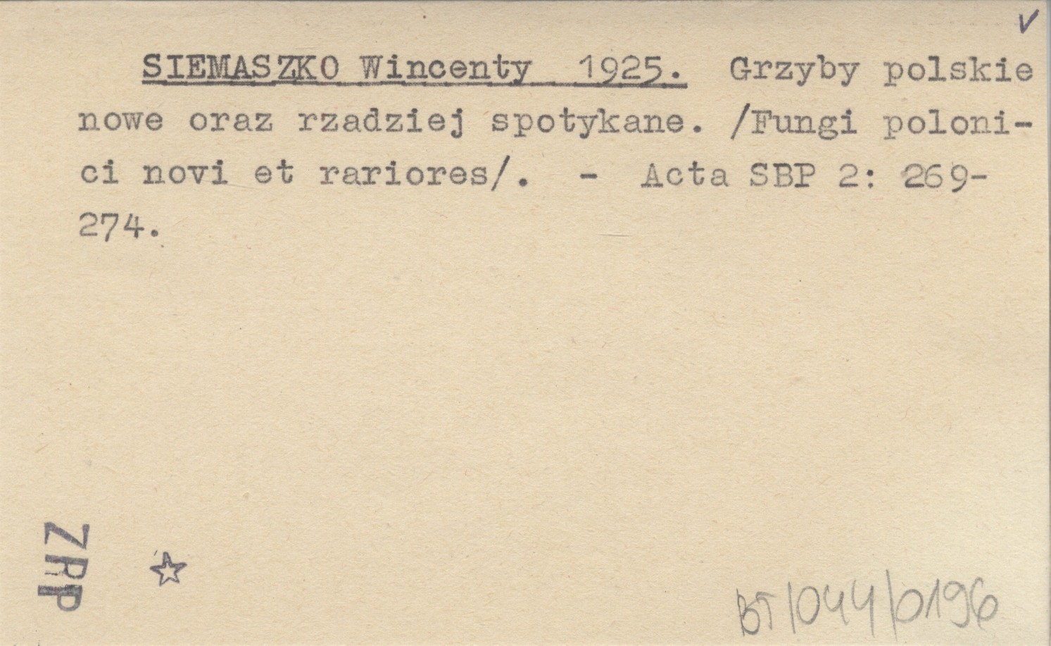 SIEMASZKO Wincenty 1925 Grzyby polskie nowe oraz rzadziej spotykane. (Fungi polonici novi et rariores).