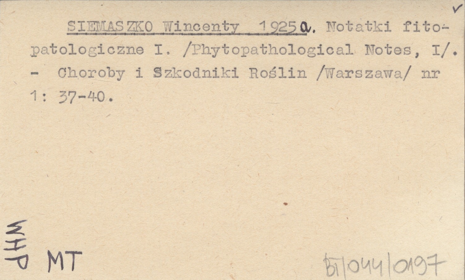 SIEMASZKO Wincenty 1925 a Notatki fitopatologiczne I. (Phytopathological Notes, I).