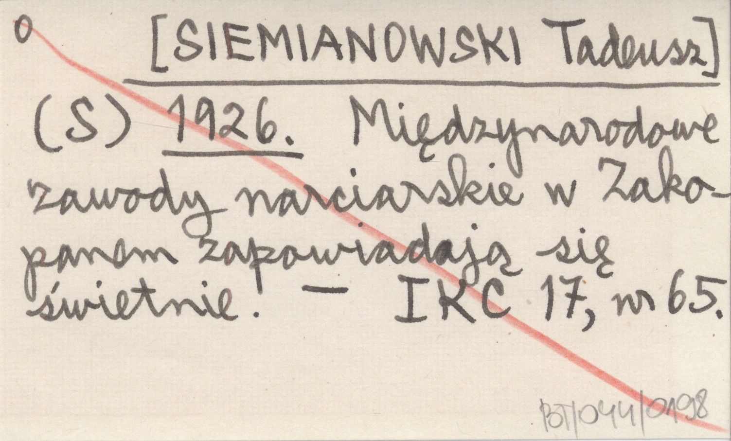 (S) [SIEMIANOWSKI Tadeusz] 1926 Międzynarodowe zawody narciarskie w Zakopanem zapowiadają się świetnie.