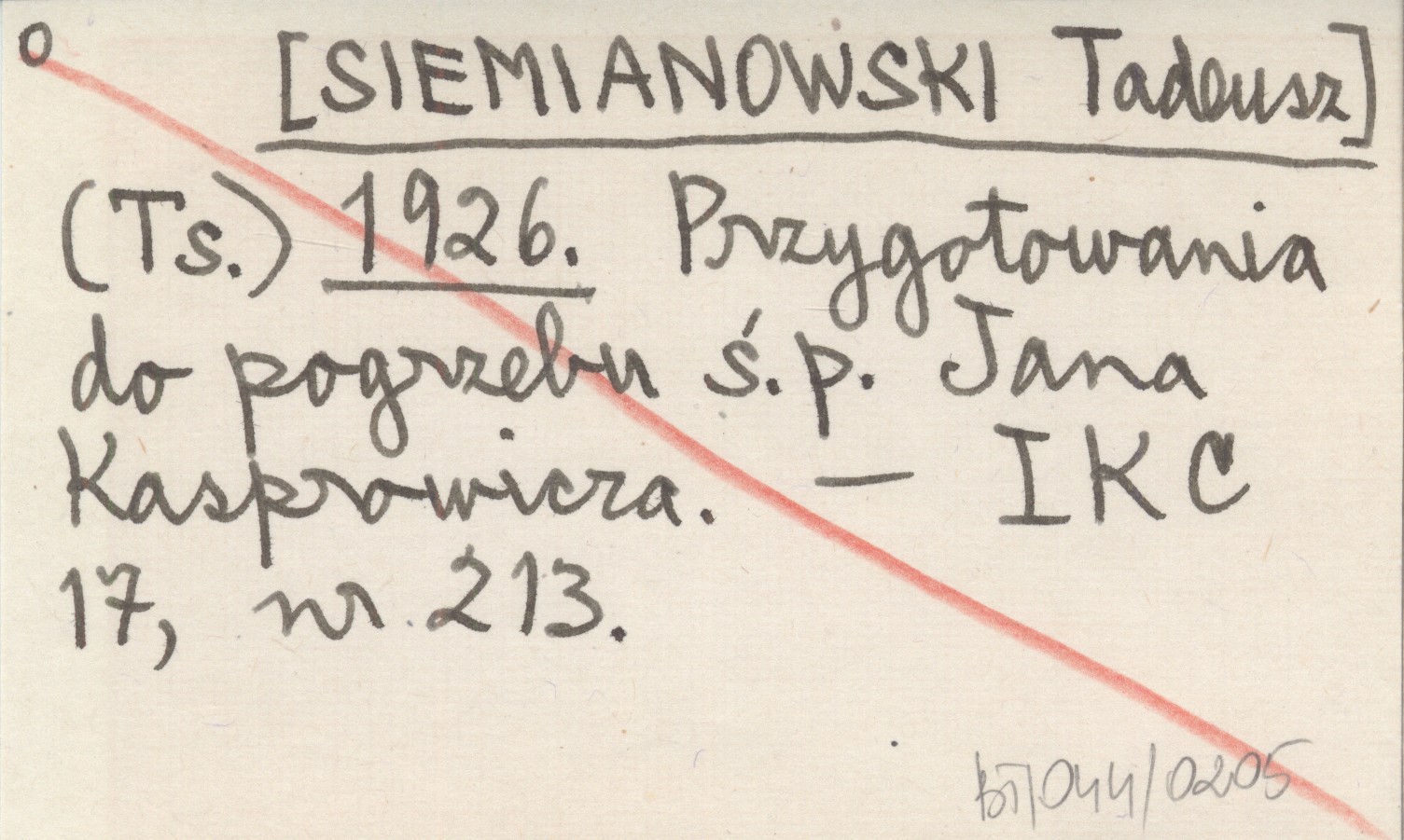 (Ts.) [SIEMIANOWSKI Tadeusz] 1926 Przygotowania do pogrzeby ś.p. Jana Kasprowicza.