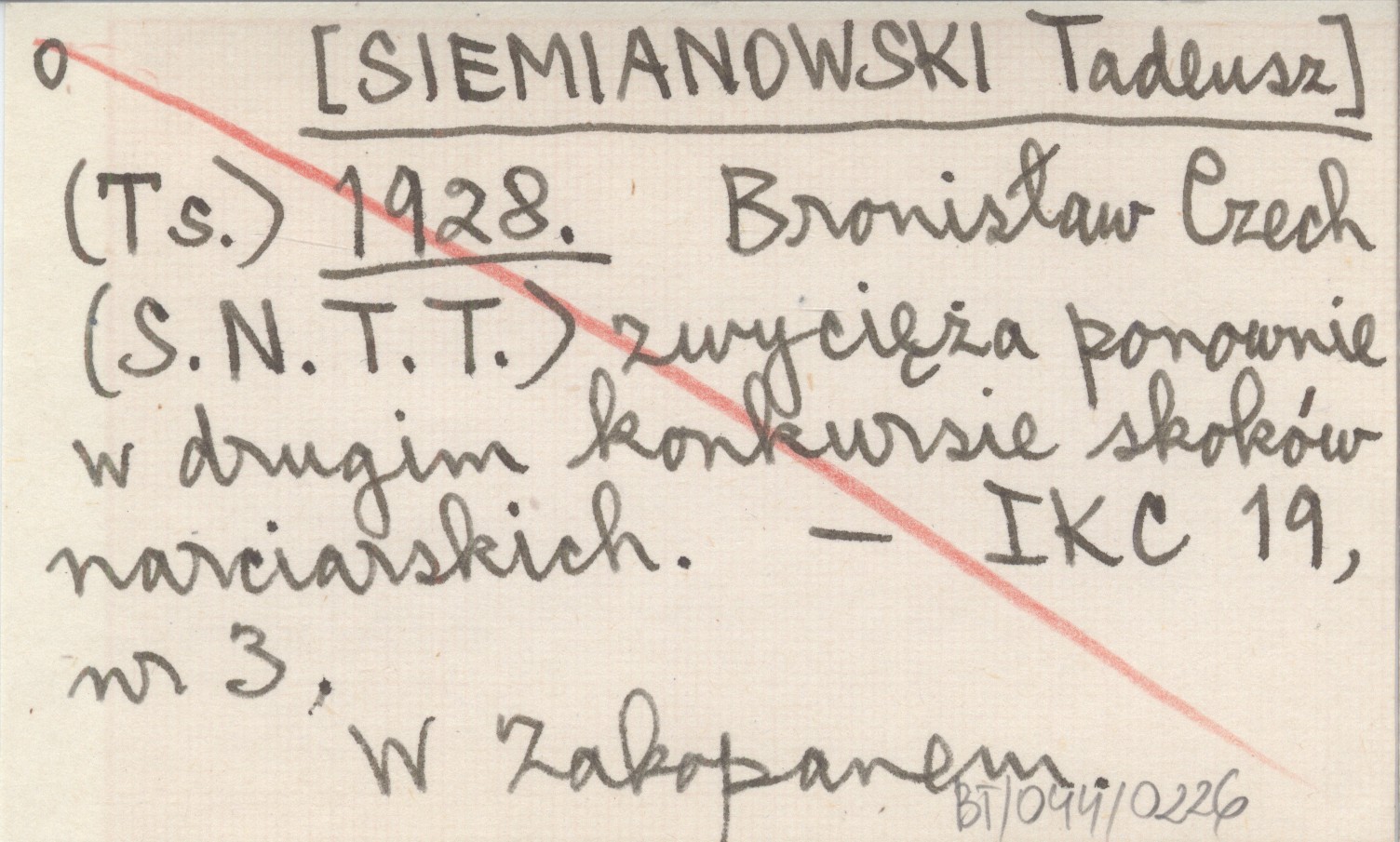 (Ts.) [SIEMIANOWSKI Tadeusz] 1928 Bronisław Czech (S.N.T.T.) zwycięża ponownie w drugim konkursie skoków narciarskich.
