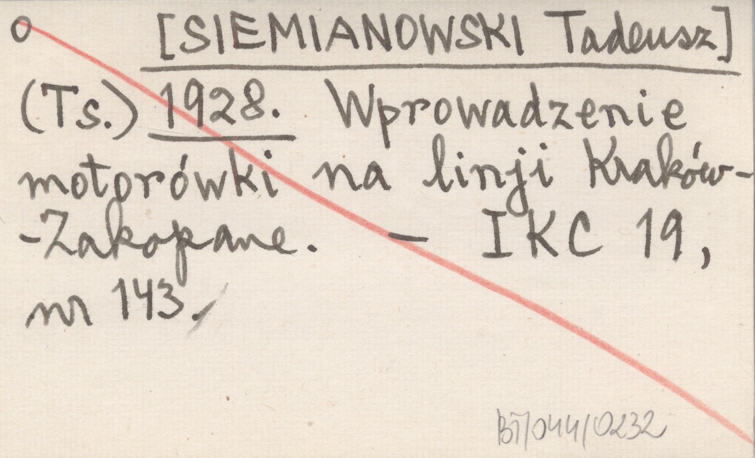 (Ts.) [SIEMIANOWSKI Tadeusz] 1928 Wprowadzenie motorówki na linji Kraków-Zakopane.