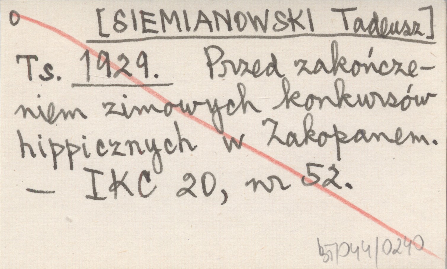 Ts. [SIEMIANOWSKI Tadeusz] 1929 Przed zakończeniem zimowych konkursów hippicznych w Zakopanem.