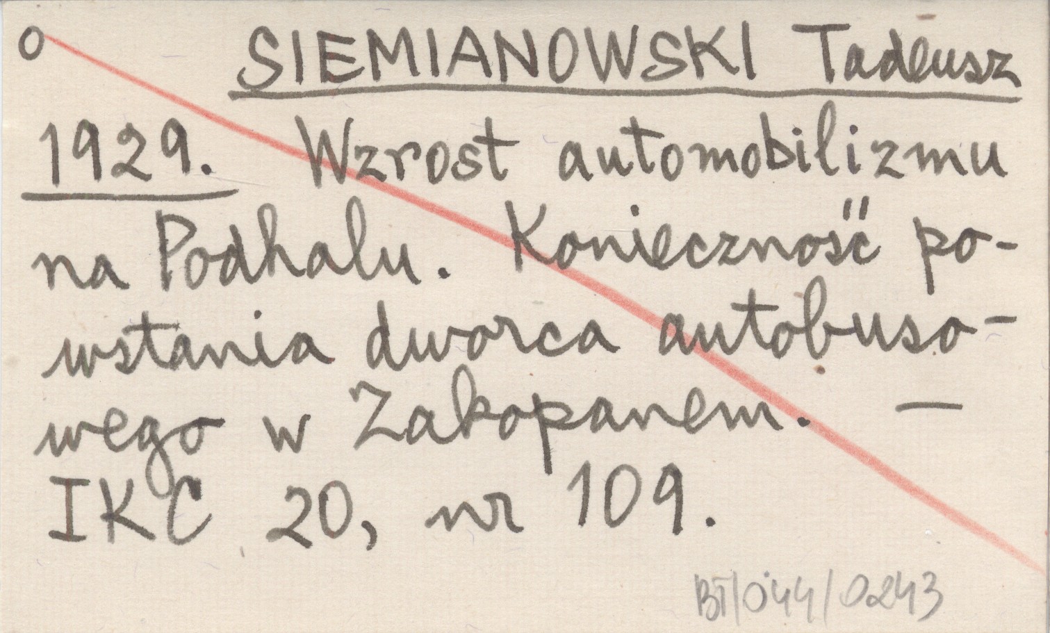 SIEMIANOWSKI Tadeusz 1929 Wzrost automobilizmu na Podhalu. Konieczność powstania dworca autobusowego w Zakopanem.