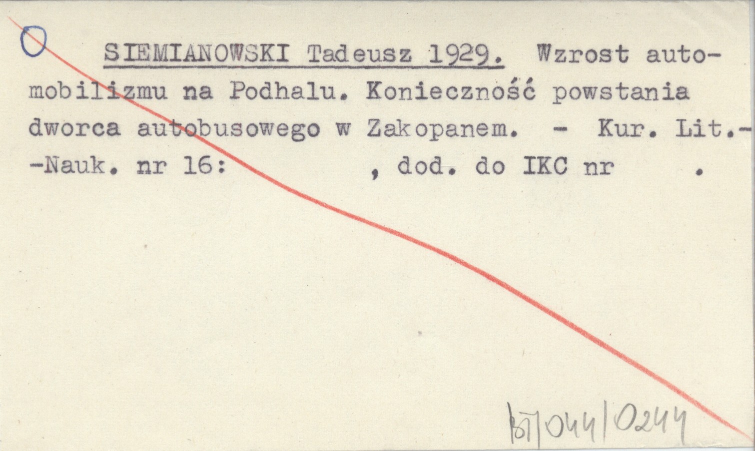 SIEMIANOWSKI Tadeusz 1929 Wzrost automobilizmu na Podhalu. Konieczność powstania dworca autobusowego w Zakopanem.
