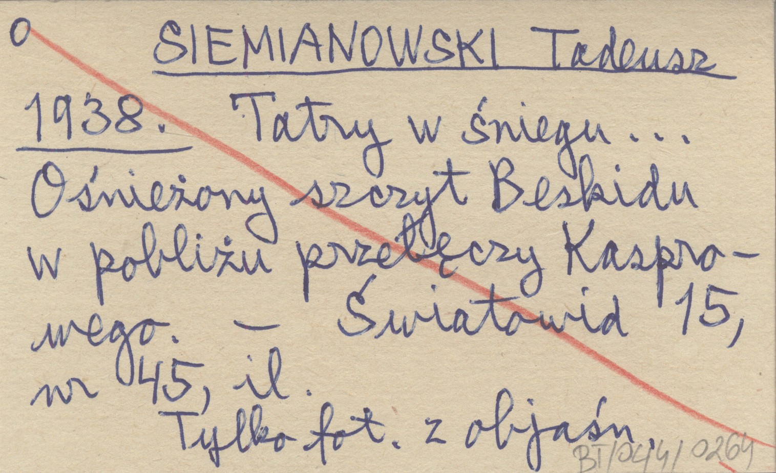SIEMIANOWSKI Tadeusz 1938 Tatry w śniegu... Ośnieżony szczyt Beskidu w pobliżu przełęczy Kasprowego.