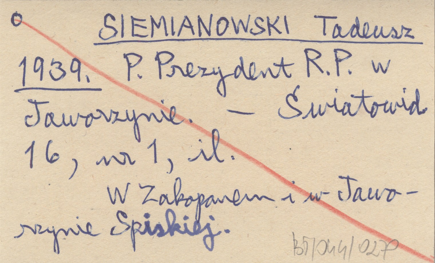 SIEMIANOWSKI Tadeusz 1939 P. Prezydent R.P. w Jaworzynie.
