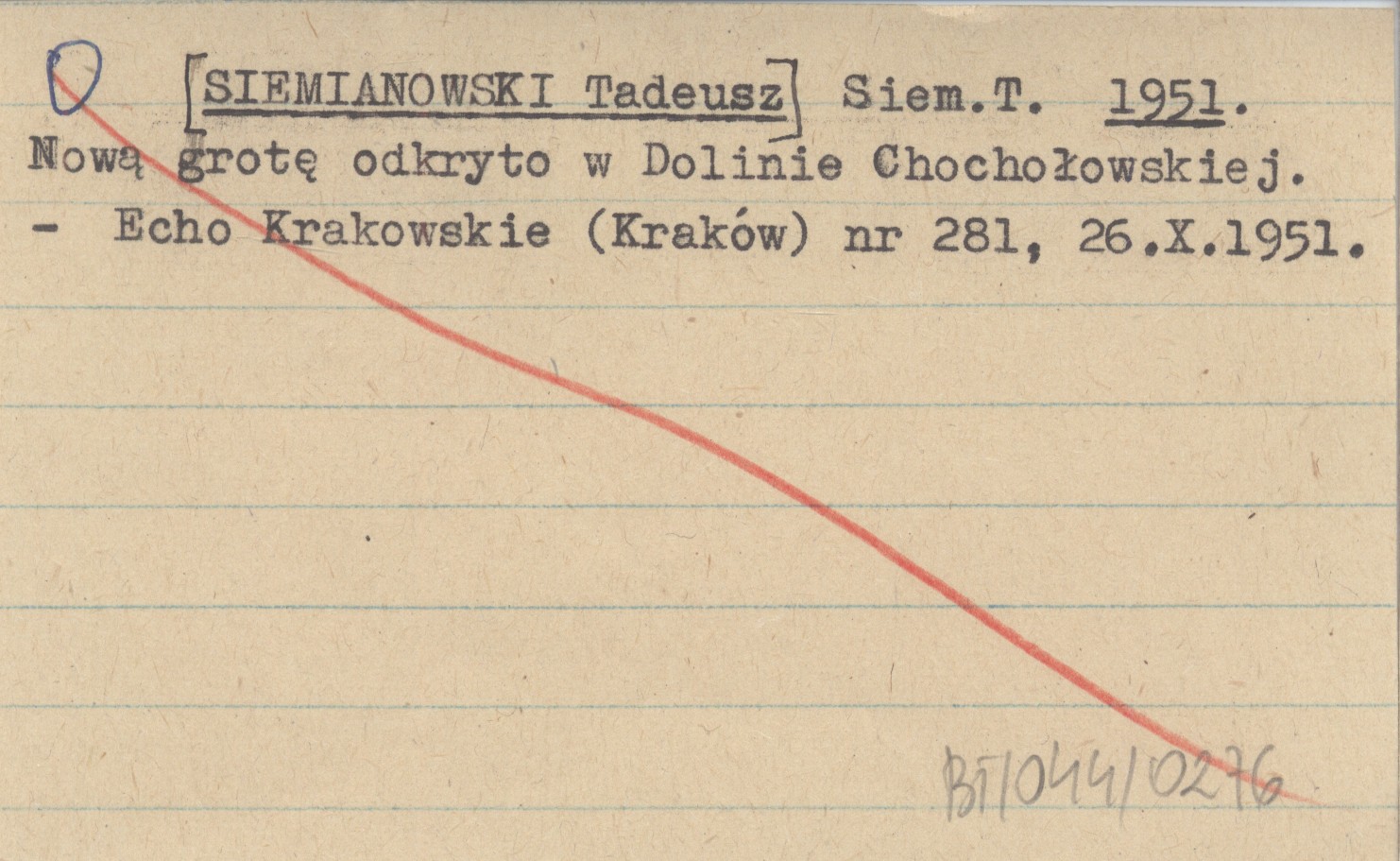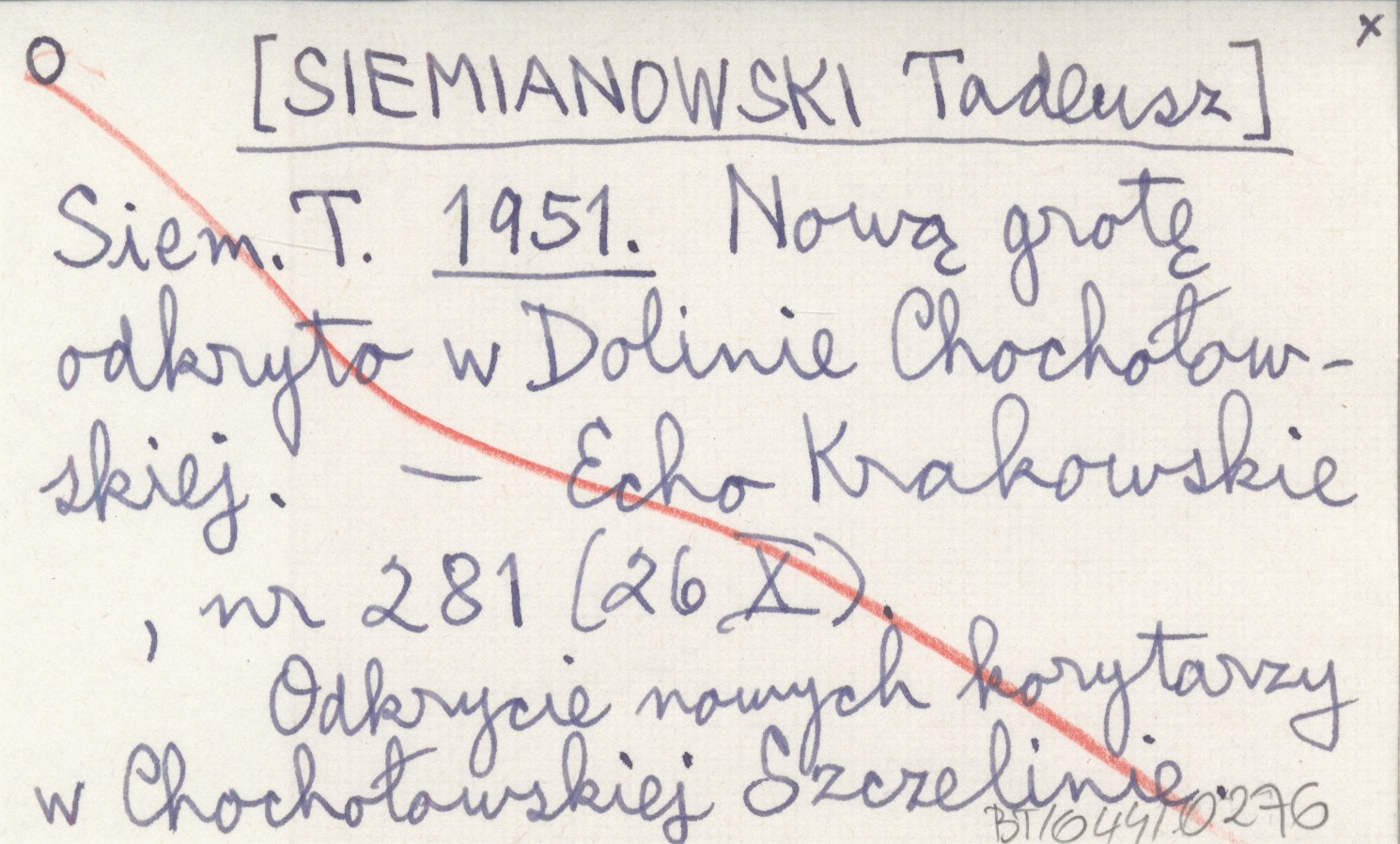 Siem. T. [SIEMIANOWSKI Tadeusz] 1951 Nową grotę odkryto w Dolinie Chochołowskiej.