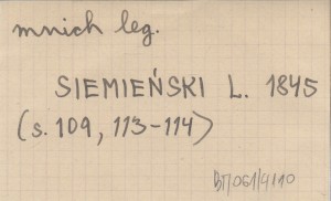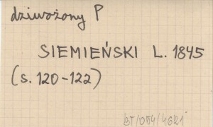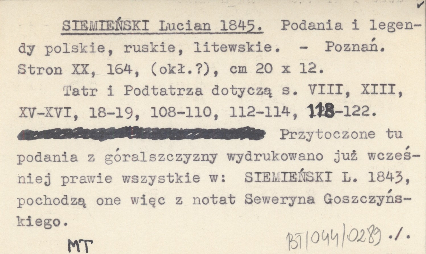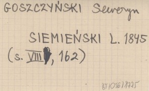 Poznań , XX, 164 s., okł. (?), 20x12 cm. Tatr i Podtatrza dotyczą s. VIII, XIII, XV-XVI, 18-19, 108-110, 112-114, 118-122. Przytoczone tu podania z góralszczyzny wydrukowano już wcześniej prawie wszystkie w: SIEMIEŃSKI L. 1843, pochodzą one więc z notat Seweryna Goszczyńskiego. REC: CERCHA S. 1899
