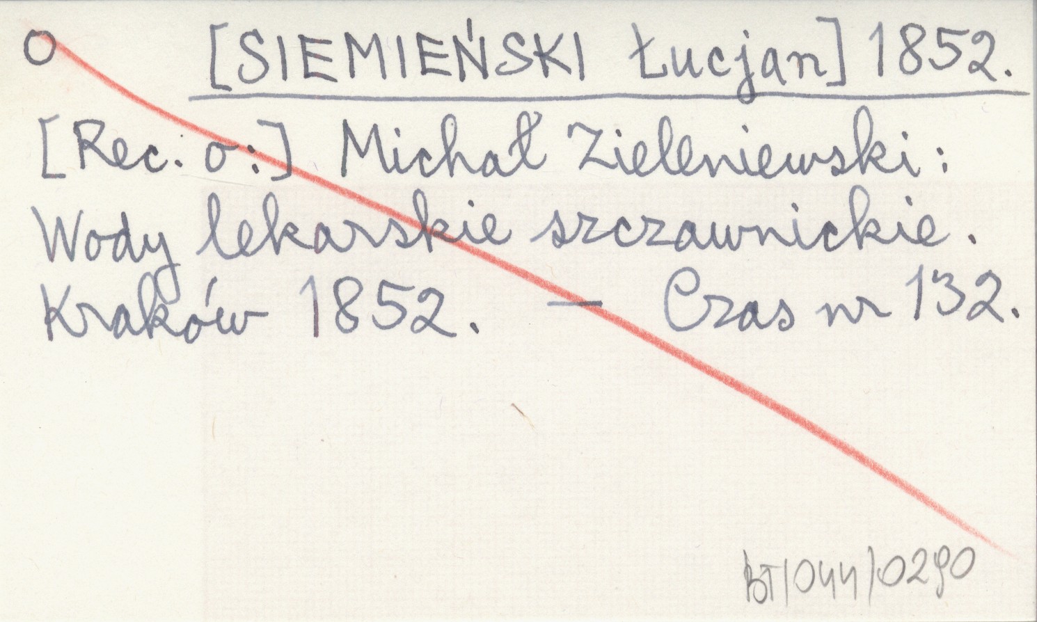 [SIEMIEŃSKI Łucjan] 1852 [Rec. o:] Michał Zieleniewski: Wody lekarskie szczawnickie. Kraków 1852.