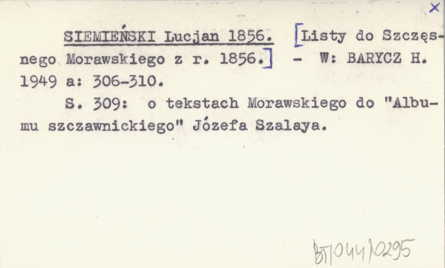 SIEMIEŃSKI Lucjan 1856 [Listy do Szczęsnego Morawskiego z r. 1856.]