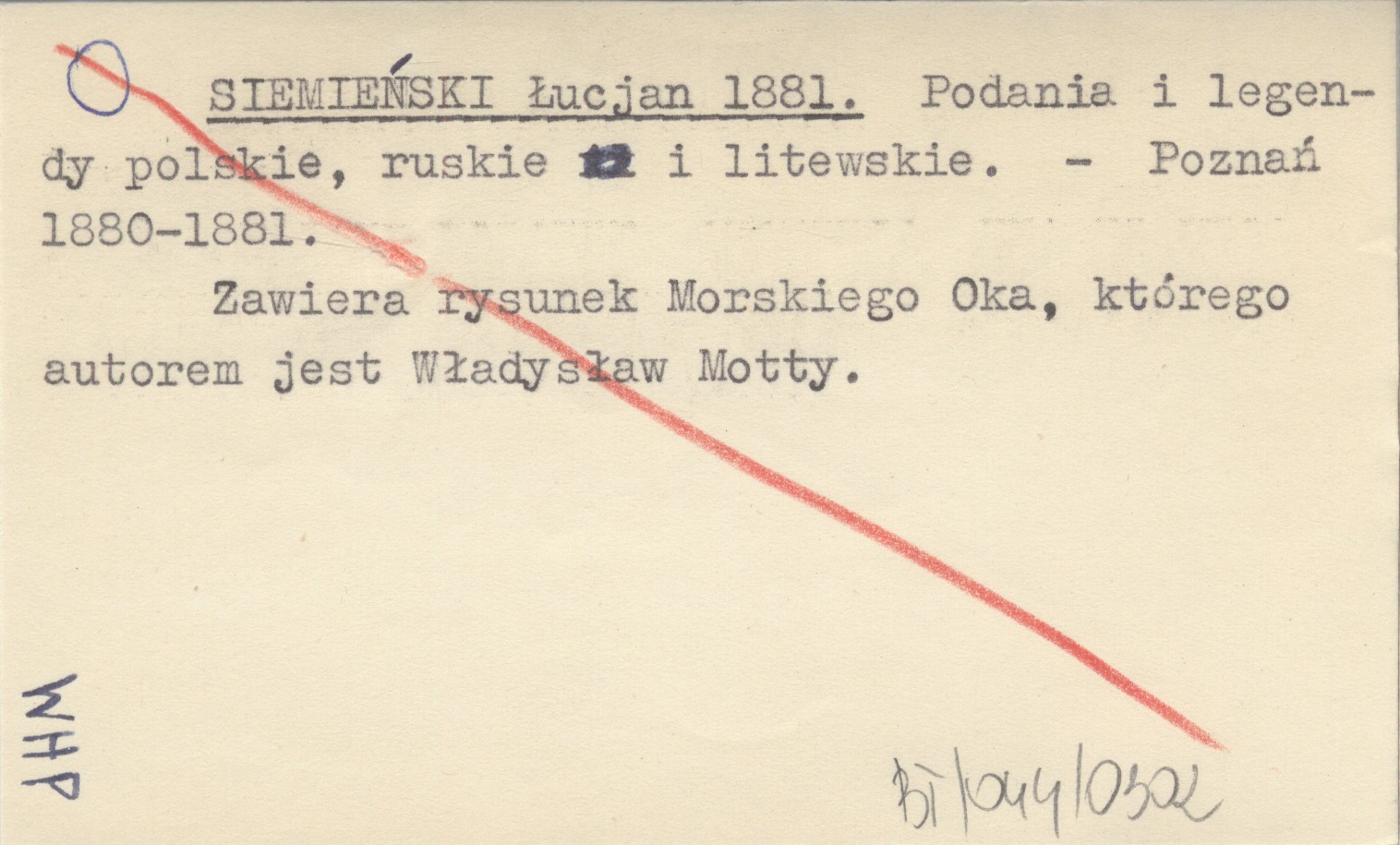 SIEMIEŃSKI Łucjan 1881 Podania i legendy polskie, ruskie i litewskie.