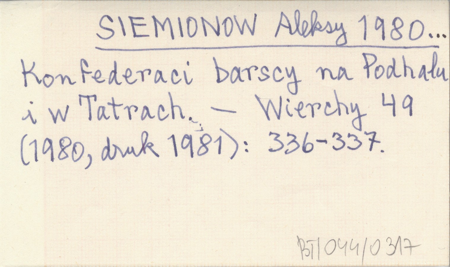SIEMIONOW Aleksy 1980... Konfederaci barscy na Podhalu i w Tatrach.
