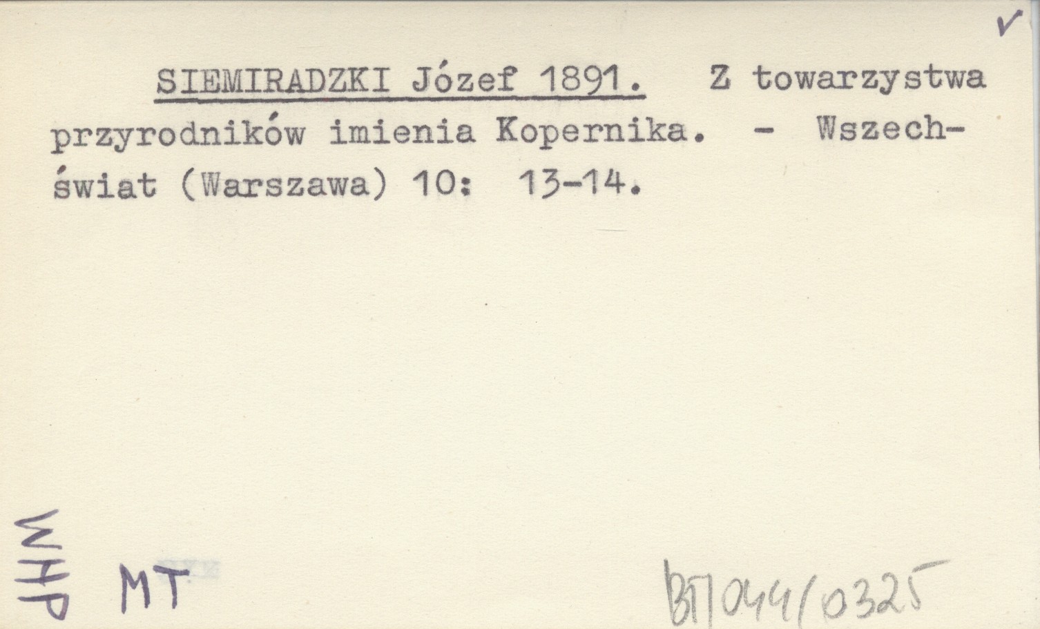 SIEMIRADZKI Józef 1891 Z towarzystwa przyrodników imienia Kopernika.