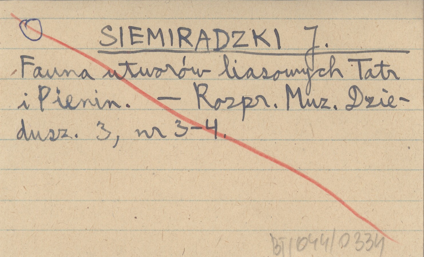 SIEMIRADZKI J. Fauna utworów liasowych Tatr i Pienin.