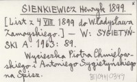 SIENKIEWICZ Henryk 1899 [List z 4 VIII 1899 do W³adys³awa Zamoyskiego.]