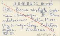 SIENKIEWICZ Henryk 1901 Pisma nieobjête wydaniem zbiorowym. IV. Pisma m³odociane: Selim Mirza. Czy ci najmilszy. Saba³owa bajka.