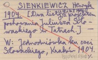SIENKIEWICZ Henryk 1904 [Dwa listy z 15 i 16 I 1904 z projektem pochowania Juliusza S³owackiego w Tatrach.]