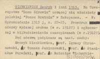 SIENKIEWICZ Henryk i in. ; 1913 Na Towarzystwo "Domu Zdrowia" uczącej się młodzieży polskiej "Pomoc Bratnia" w Zakopanem.