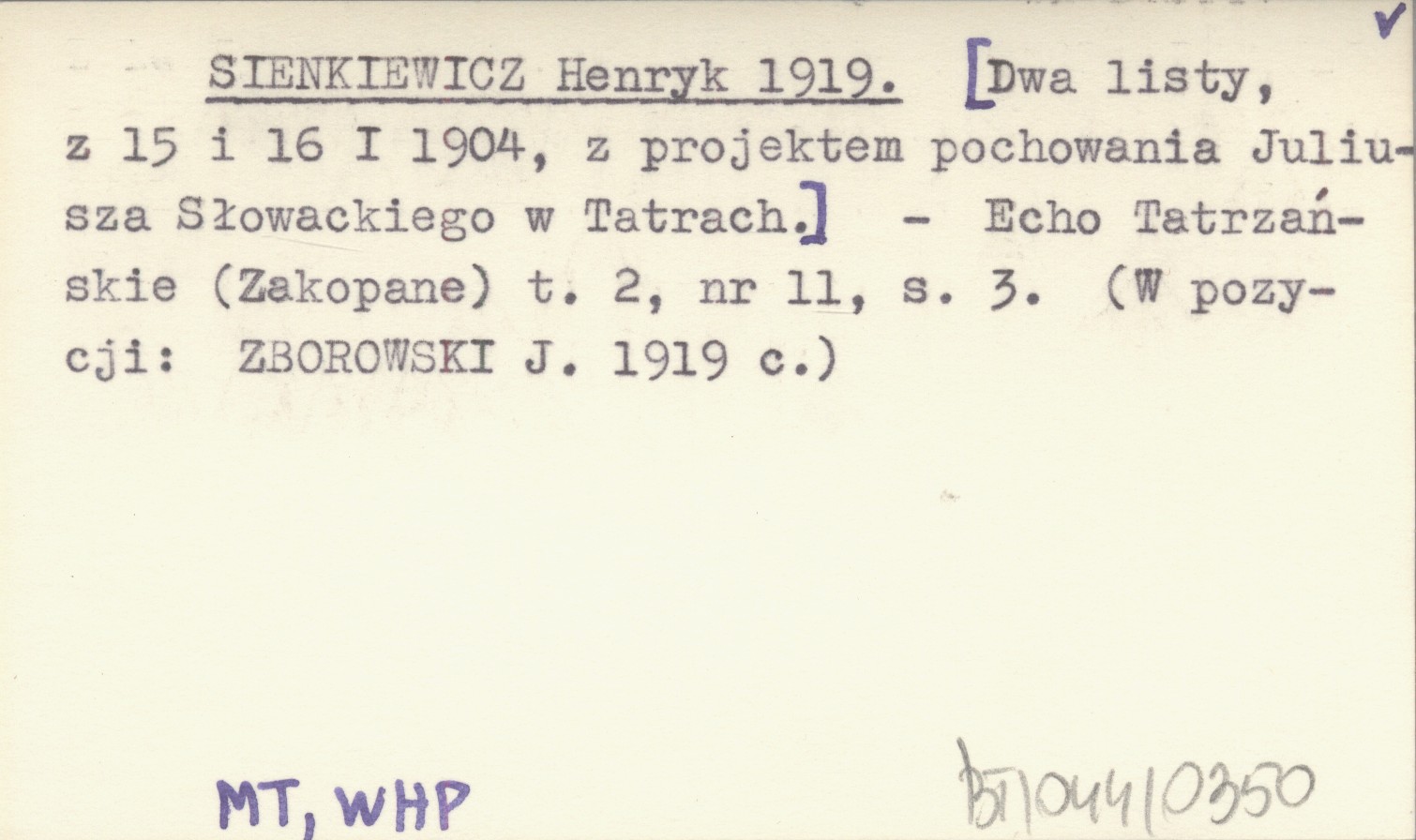 ZBOROWSKI J. 1919 c Echo Tatrzańskie (Zakopane) , T. 2, nr 11: 3.
