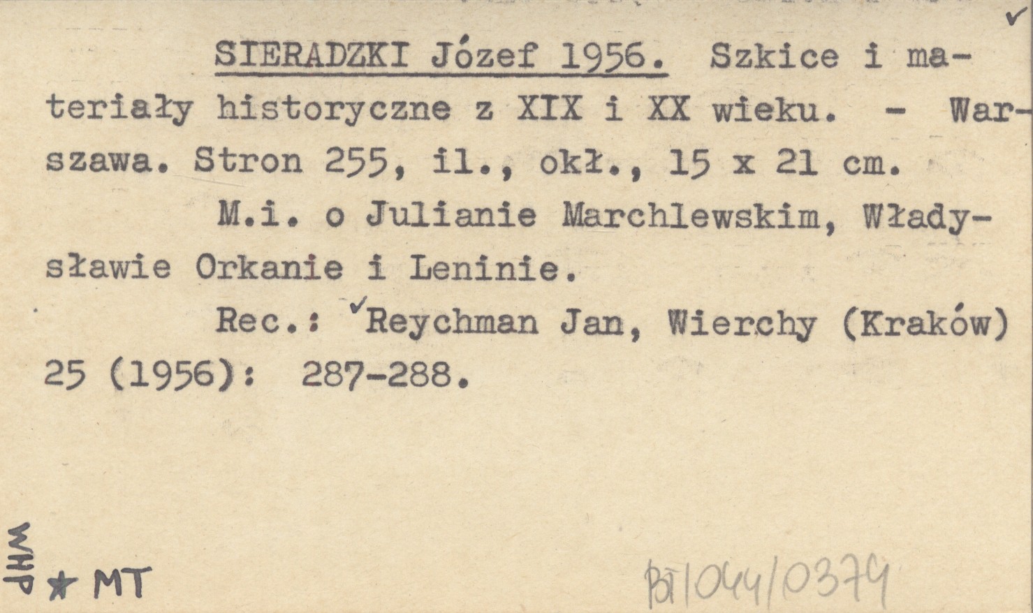 SIERADZKI Józef 1956 Szkice i materiały historyczne z XIX i XX wieku.