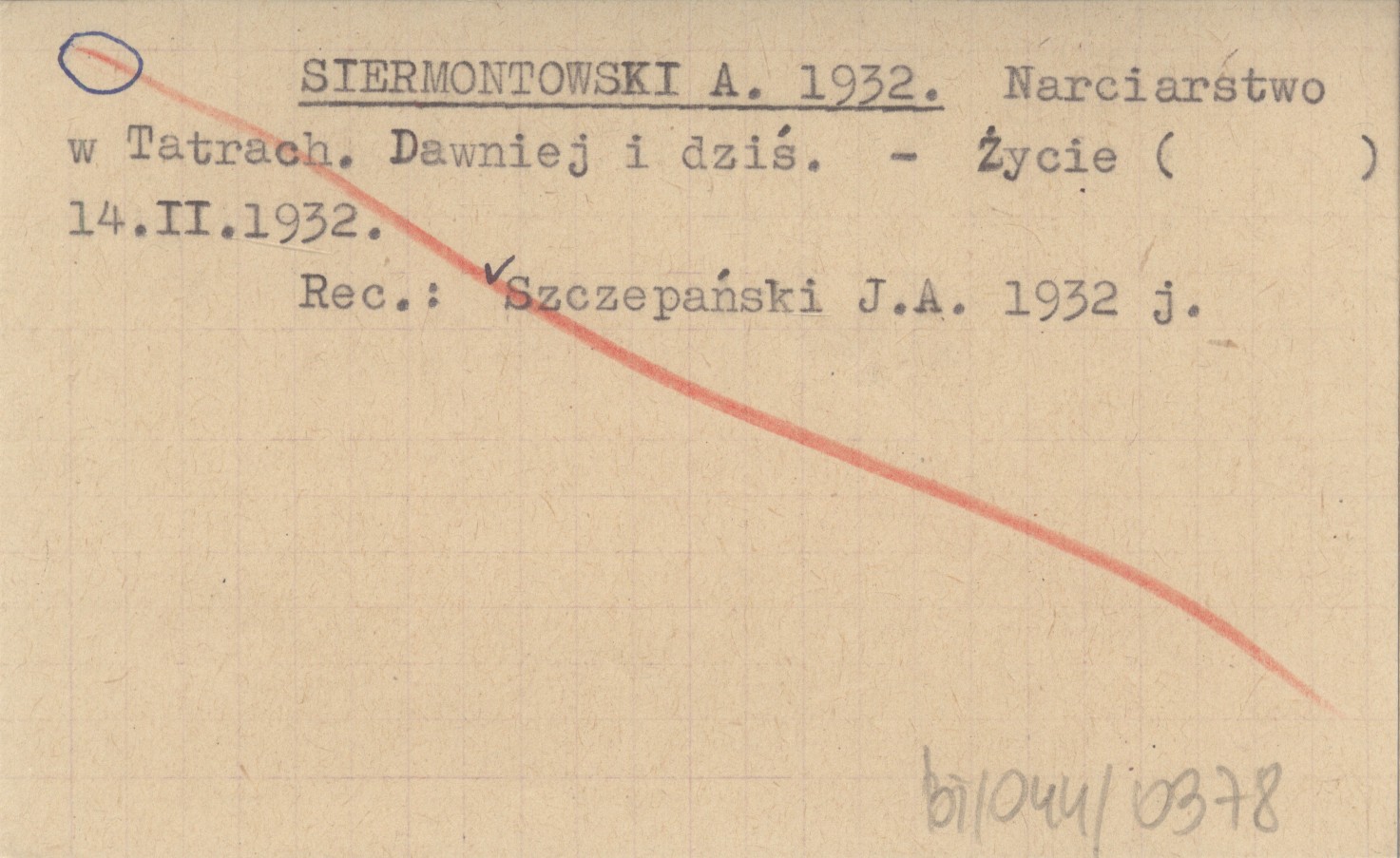 SIERMONTOWSKI A. 1932 Narciarstwo w Tatrach. Dawniej i dziś.