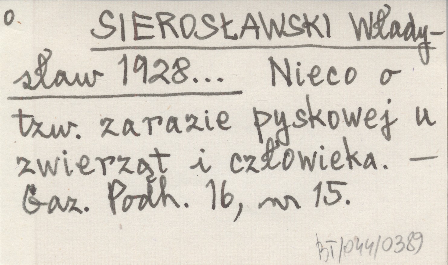 SIEROSŁAWSKI Władysław 1928... Nieco o tzw. zarazie pyskowej u zwierząt i człowieka.